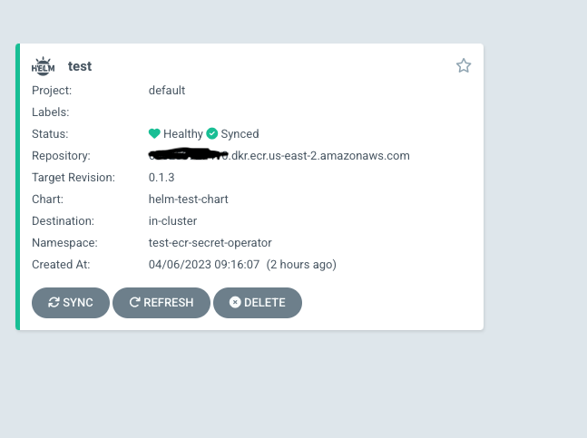 This operator contains two Custom Resources which direct the operator to generate/refresh Amazon ECR authorization token in a timely manner: